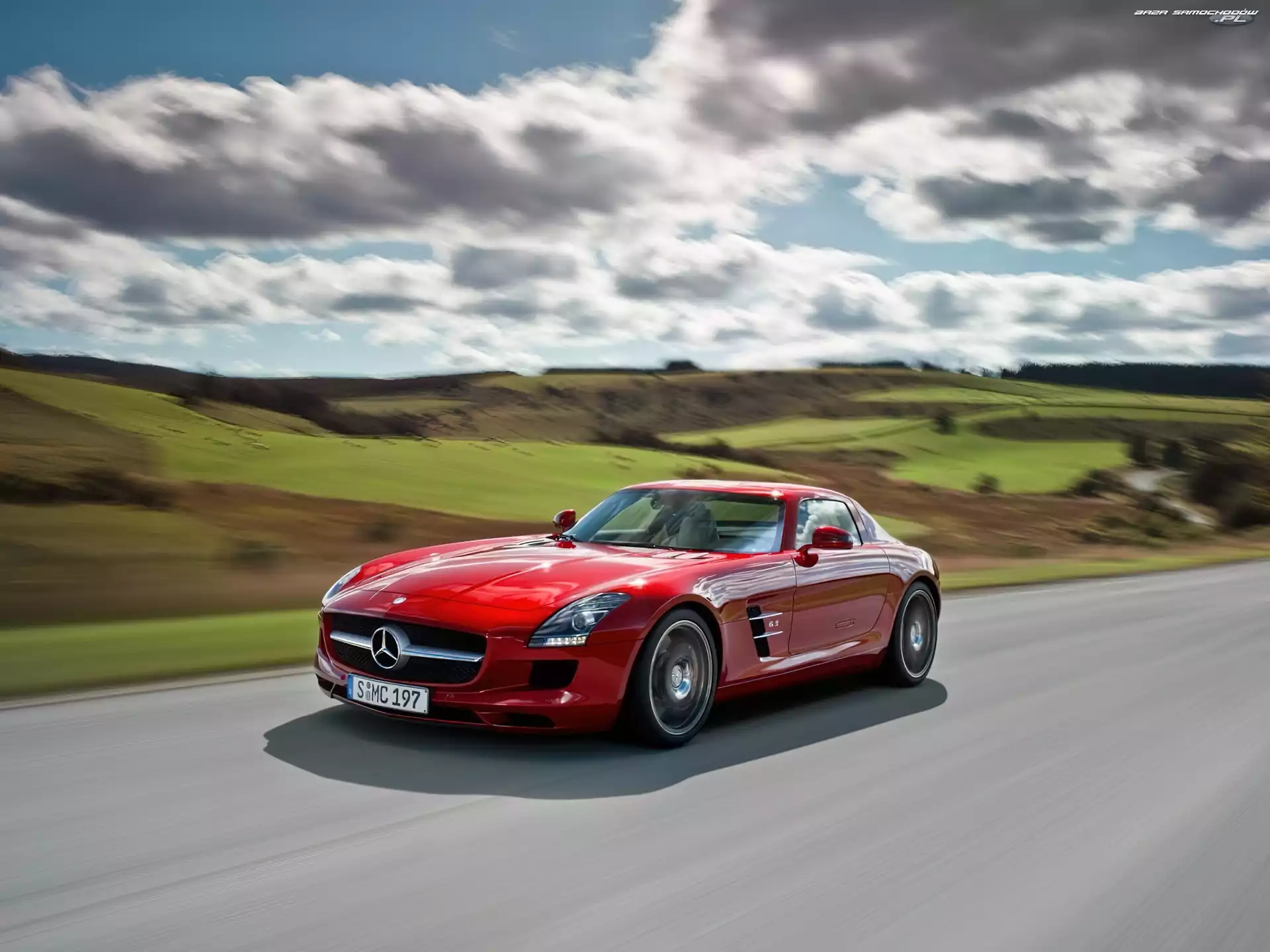 Samochód: Czerwony, Mercedes Benz SLS, Droga, AMG