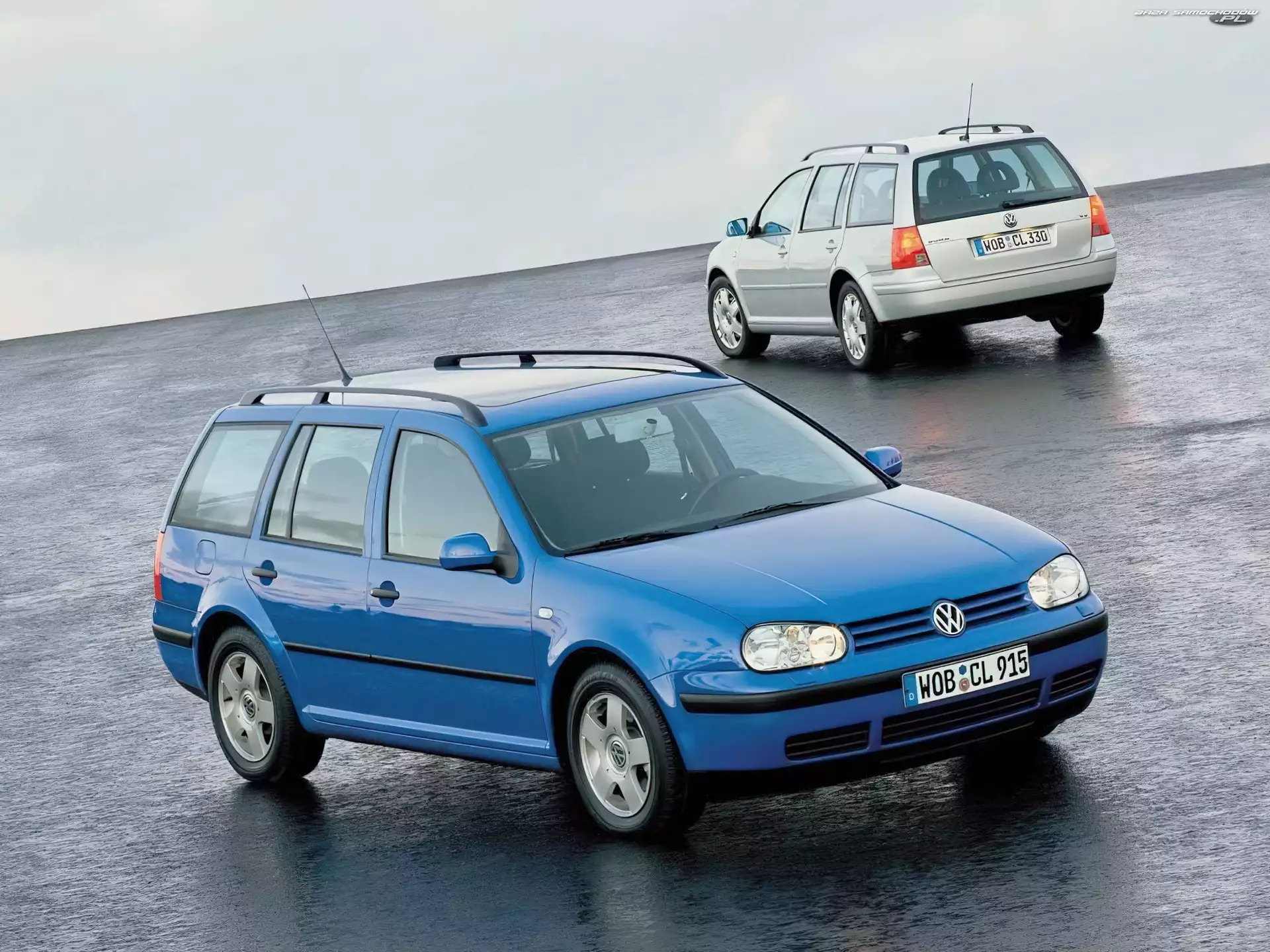 Srebrny, Dwa Golfy 4, Niebieski- Zdjęcia samochodów